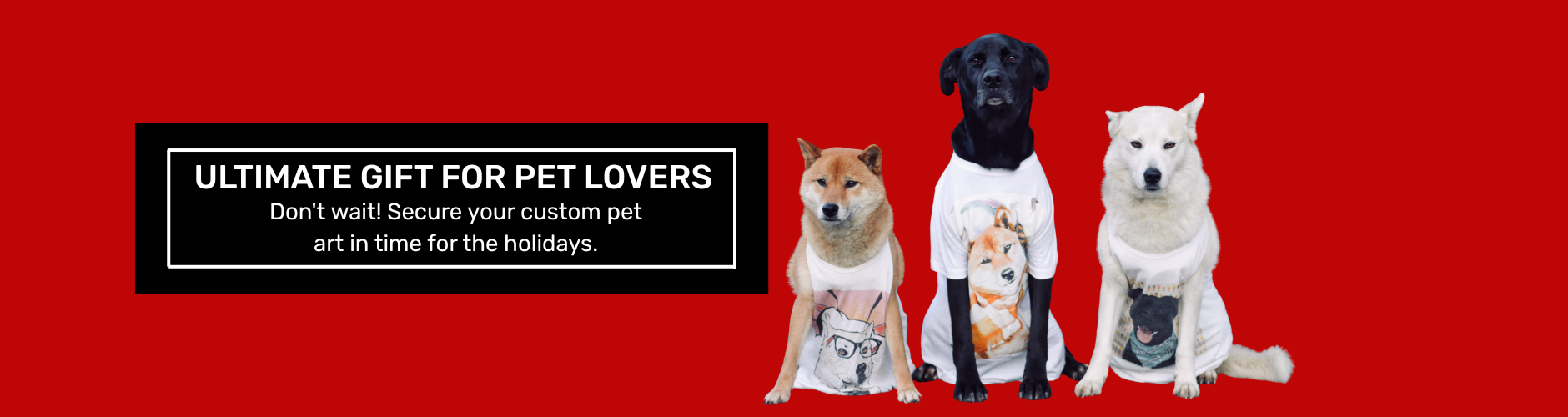 Showcase your beloved dog portrait, cat portrait, or any custom pet art in our Apparel collection. We offer unique custom pet designs in Pop Art, Renaissance, Pop Culture, or Retro styles. These make wonderful gifts for any pet lover.