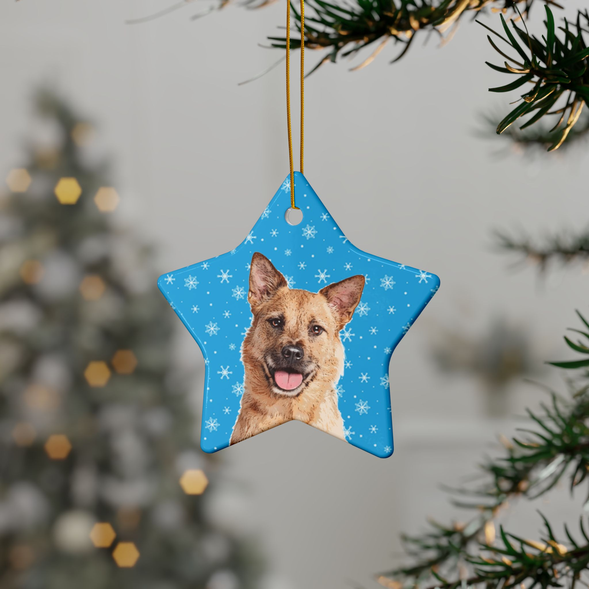 Add your dog's precious face to our fun double-sided Holiday Ornaments!